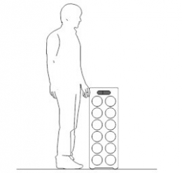 Dimensioni cm30x20,5xh85. Finitura a polveri epossipoliestere. Colori: efetto corten, grigio alluminio, grigio micaceo, bianco, nero, blu sablè.