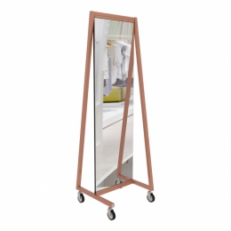 Specchiera da terra, girevole su ruote, realizzata in tubo quadro 30x30 mm.Ruote Ø 80 mm