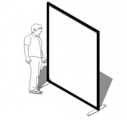 SPECCHIO AUTOPORTANTE con struttura in alluminio e specchio sintetico. Dimensione 150x200xh, dimensione piede metallico cm 53. Finitura parti metalliche con polveri epossipoliestere a caldo, colori: grigio alluminio, grigio micaceo, bianco.