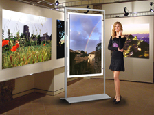 Pannelli espositivi autoportanti bifacciali su ruote della linea MACRO