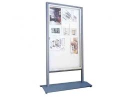 BACHECA autoportante su ruote della linea Sideros con struttura e base metallica e bacheca interna monofacciale con lastra in policarbonato trasparente completa di serratura.