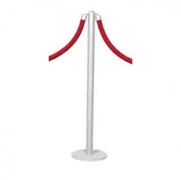 Paletto dissuasore e guidalinee con tubo in alluminio predisposto per aggancio corda e base metallica . Base metallica con rivestimento in abs. Colore parti metalliche: argento satinato. Dimensioni: altezza cm 93, diametro base cm 24.