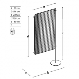 PannelloESPOSITIVO aggiuntivo della linea Expò composto da n. 1 piantana metallica, n. 1 griglia metallica bifacciale, cm 80x150h, e n. 1 piede metallico tondo diam. cm 39.