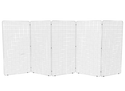Composizioni di griglie espositive modulari maglia cm 5x5. Griglie espositive per mostre temporanee, mostre fotografiche, mostre itineranti, manifestazioni, mostre di pittura, biblioteche ed enti. Griglie espositive metalliche con finitura anche per esterno. Griglie espositive di grande formato.