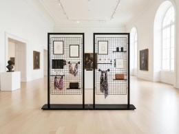 Pannello ESPOSITIVO autoportante della linea Sideros con struttura e base metallica e griglia metallica bifacciale cm 100x150h.