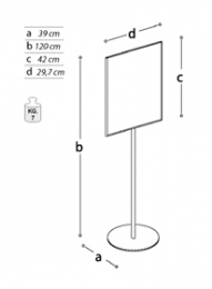 LEGGIO metallico con funzione espositiva e didascalica della linea Expò. Piano verticale formato lastra sandwich A3 verticale (cm 29,7x42h mm 3).