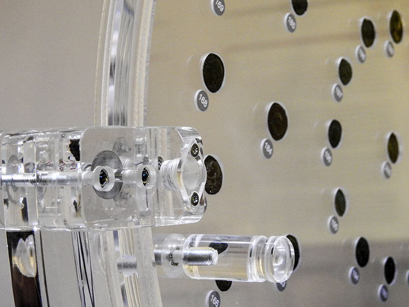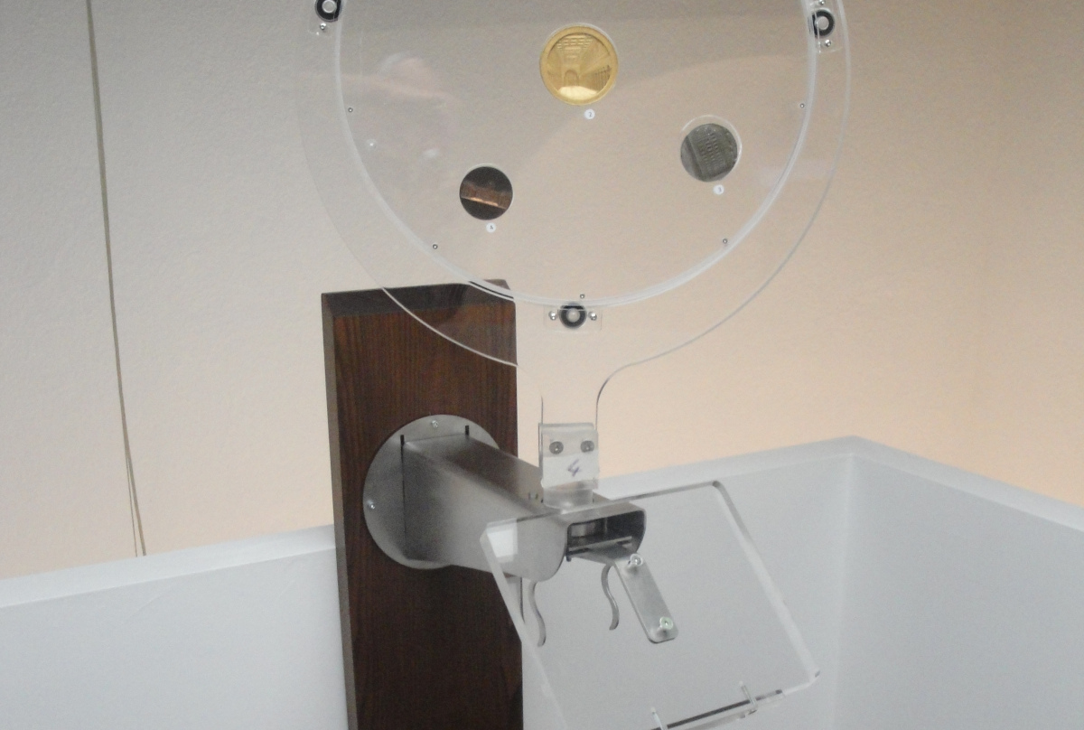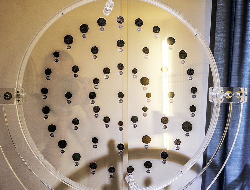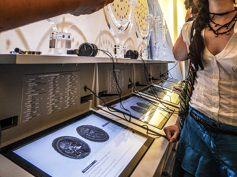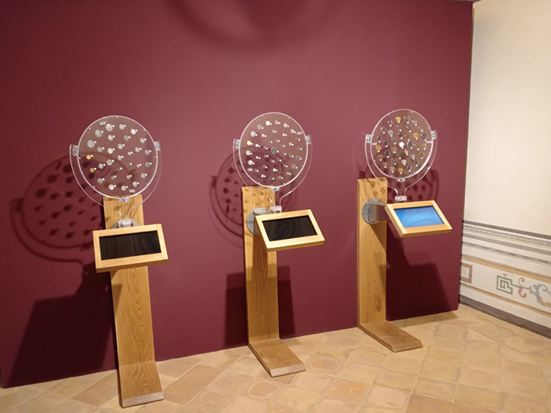 Il Monetiere/Medagliere Interattivo Rotante è un nuovo e rivoluzionario strumento, aggiunto nella collezione Mastroiannidesign per l’esposizione contemporanea di monete antiche e rare, medaglie, etc. disegnato e realizzato in Italia. Si differenzia dalle teche classiche sia nei materiali, che nella modalità di utilizzo. Dotato di sistemaTouch Screen, è stato realizzato per consentire al numismatico, o chi per esso, di raccontare nei particolari storici, geografici, fotografici, di commento (audio-video) le singole monete o medaglie che si andranno ad inserire in ogni disco espositore, inoltre il Monetiere/Medagliere Interattivo Rotante consente una visione ravvicinata, sia sul diritto che sul rovescio, di ciascuna moneta/medaglia esposta, e consente al visitatore, grazie alle sue rotazioni (Orizzontale e Verticale), di mettere in posizione regolare (Diritta) qualsiasi oggetto esposto.
