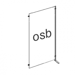 Pannello ESPOSITIVO modulare autostabile aggiuntivo della linea Expò composto da n. 1 piantana metallica, n. 1 lastra OSB ( lamelle di legno incollate e pressate) , cm 120x200h, spessore mm 9, e n. 1 piede metallico dritto cm 4x45. Finitura parti metalliche con polveri epossipoliestere a caldo, colori: grigio alluminio, grigio micaceo, bianco. Colore lastra: OSB. Ingombro struttura c.a. cm 126x200h.