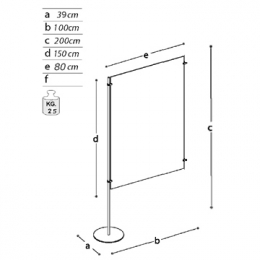 Pannello ESPOSITIVO aggiuntivo della linea Expò composto da n. 1 piantana metallica, n. 1 lastra bifacciale metallica per magneti, cm 75x150h, spessore mm 12/10 e n. 1 piede metallico tondo diam. cm 39.