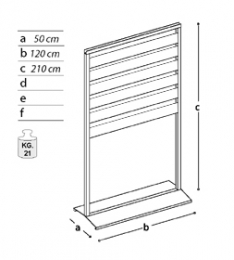 Ingombro struttura cm 120x210h. Basamento cm 120x50