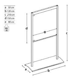 Pannello BACHECA autoportante della linea Sideros con struttura e base metallica e bacheca interna monofacciale con lastra in metacrilato trasparente completa di serratura.