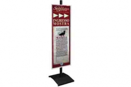 Pannello INFORMATIVO autoportante della linea Sideros con base e piantana metallica. Lastra monofacciale sandwich, alluminio-polietilene-alluminio, cm 50x150h, spessore mm 3.