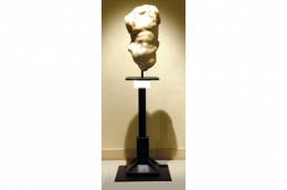 SUPPORTO in metallo della linea Sideros con asta centrale e piano espositivo ad altezza regolabile per l'allestimento di reperti.