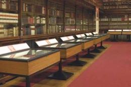 Vetrina espositiva a TAVOLO della linea Testi con struttura in metallo e n. 1 gamba centrale. Piano superiore apribile con vetro stratificato e serratura ad incasso. Vano espositivo con controllo passivo dell’umidità (silica gel granulare).