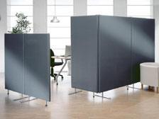 Divisori espositivi finitura tessile. Eleganza e flessibilità d'uso. Rotazioni 360°. Spessore mm 40
