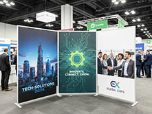 Pannelli espositivi autoportanti bifacciali su ruote della linea EXPO'