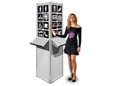 Pannelli informativi a leggio con funzione didascalica ed espositiva leggeri e facili da montare.