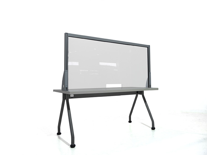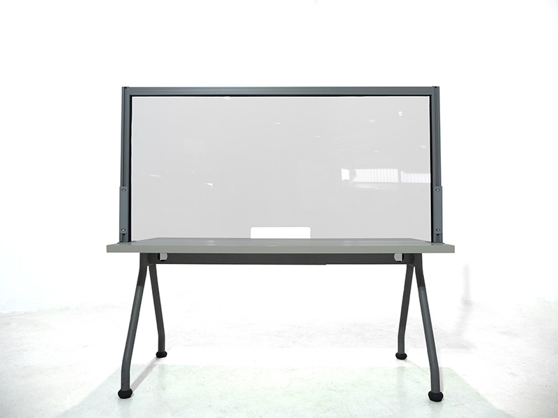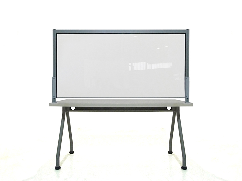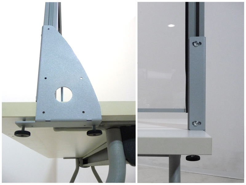 Schermi divisori da scrivania. Cornice in alluminio, lastra interna in lastra acrilica. Per la separazione utente-operatore in postazioni front office