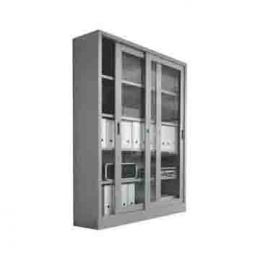 Armadio in lamiera mm 8/10, ad ante scorrevoli in vetro temperato con n. 4 ripiani. Dimensione: cm 180x45xh200. Peso kg 124
