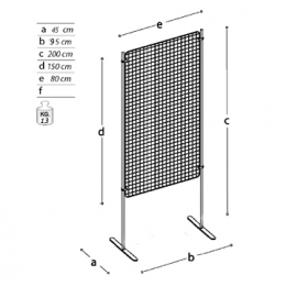 Pannello ESPOSITIVO modulare autostabile della linea Expò composto da n. 2 piantane metalliche, n. 1 griglia metallica bifacciale cm 80xh150 e n. 2 piedi metallici dritti cm 4x45.