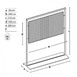 Pannello ESPOSITIVO autoportante della linea Sideros con struttura e base metallica e griglia metallica bifacciale, cm 200x100h.