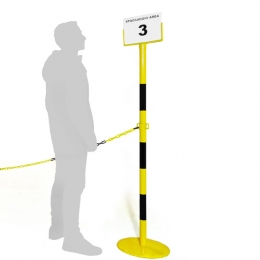 Colonnina informativa con 4 ganci - cm 180h, piantana in tubolare di acciaio mm 50 dotata din.4 ganci e pellicola in PVC adesivo colore nero. Portafogli A4 composto da n.2 lastre in plex spessore mm 3 con cornice metallica da innestare e bloccare su piantana. Base tonda bombata in acciaio diametro cm 39 con sottostante zavorra in acciaio diametro cm 35.Pesodella base: Kg 3,9. Peso della zavorra:Kg 5.