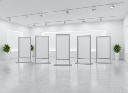 Pannello ESPOSITIVO autoportante della linea Sideros con struttura e base metallica e lastra bifacciale in lamiera per magneti, cm 100x150h, spessore mm 12/10.