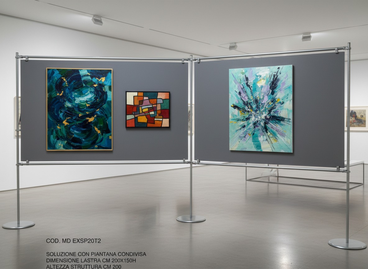 Pannelli espositivi componibili composti da piantane, pannelli compositi in alluminio + polietilene + alluminio e griglie metalliche . Pannelli espositivi in plexiglass. Pannelli espositivi in legno. Pannelli espositivi in metallo. Pannelli espositivi usati. Pannelli espositivi trasportabili. Griglie espositive per mostre temporanee, griglie per mostre fotografiche, mostre itineranti, manifestazioni, mostre di pittura, biblioteche ed enti. Griglie espositive con finitura per esterno ideali per l'arredo urbano. Griglie espositive di grande formato. Spessori: lastra composita  mm 3 - piantana diametro mm 25.