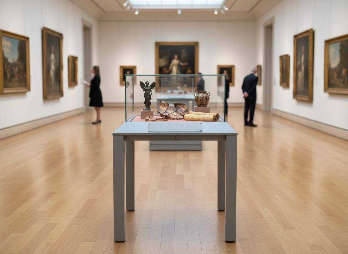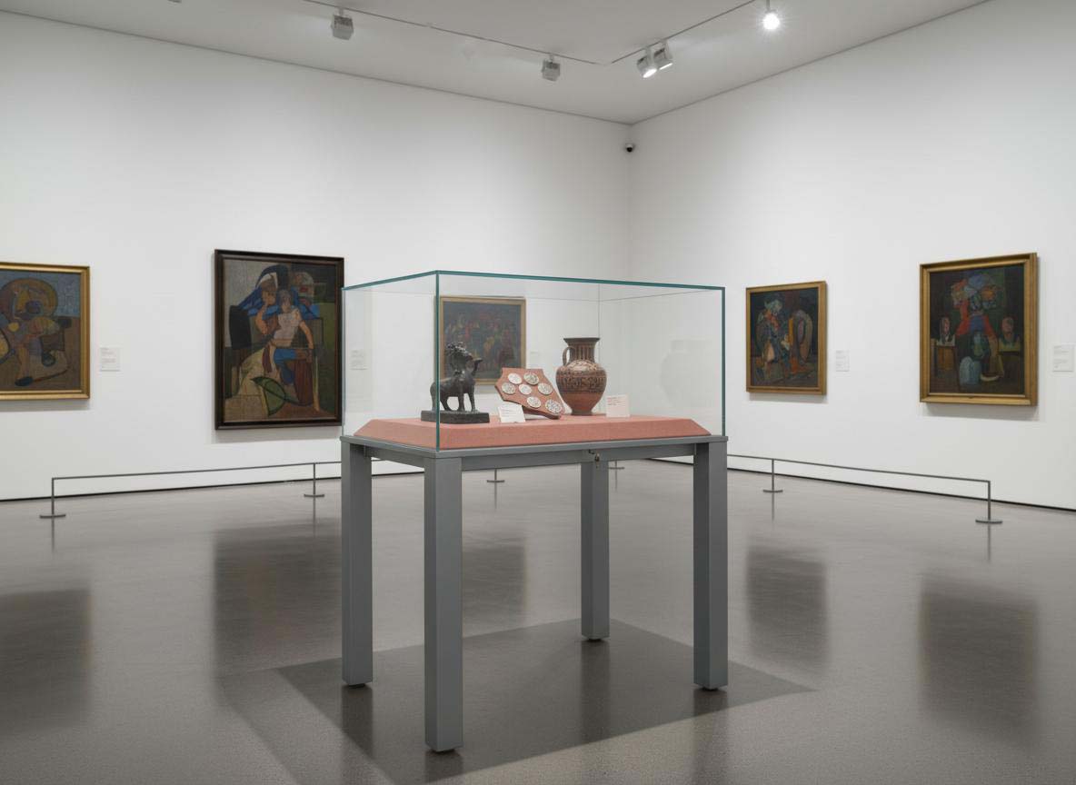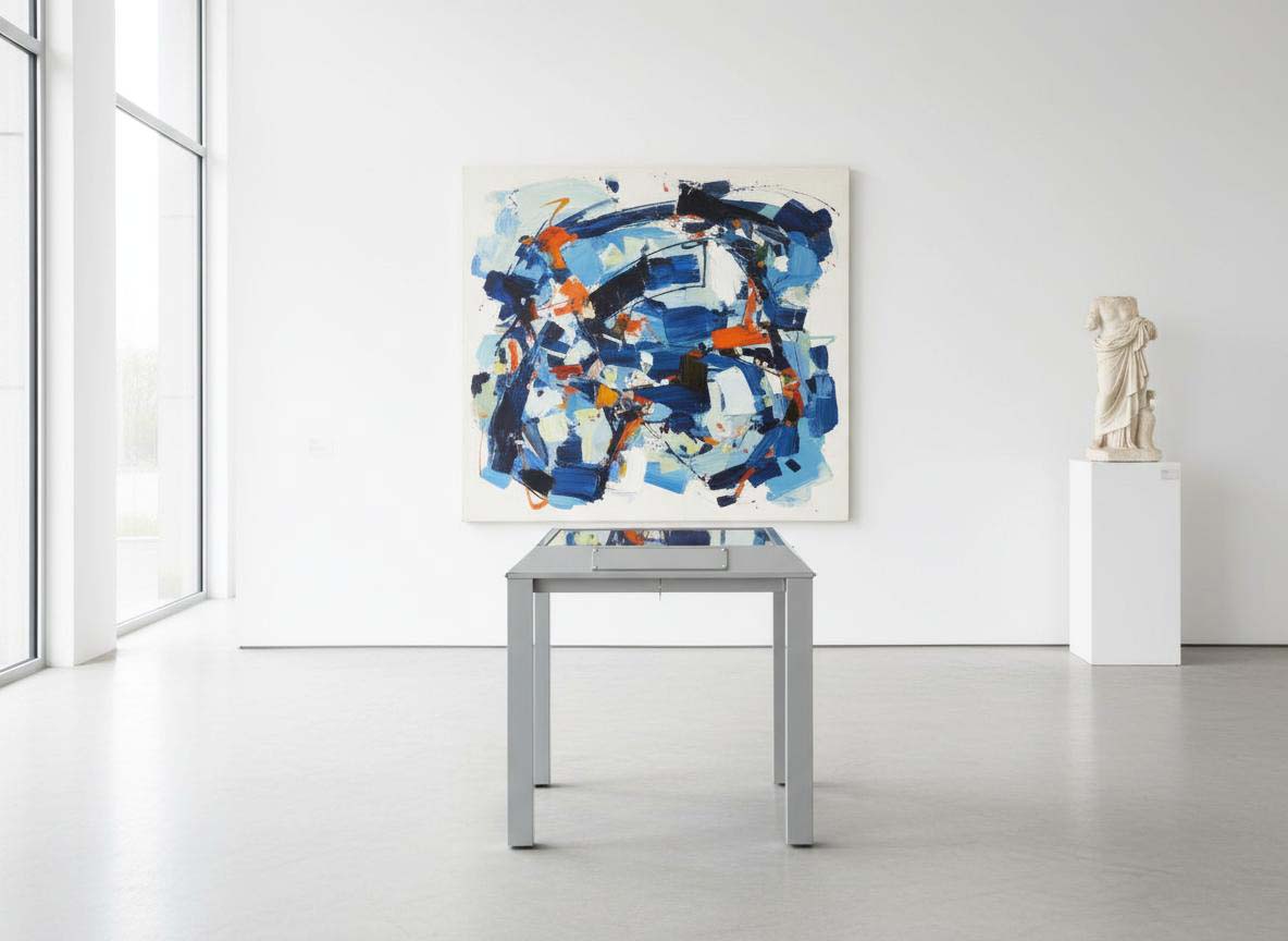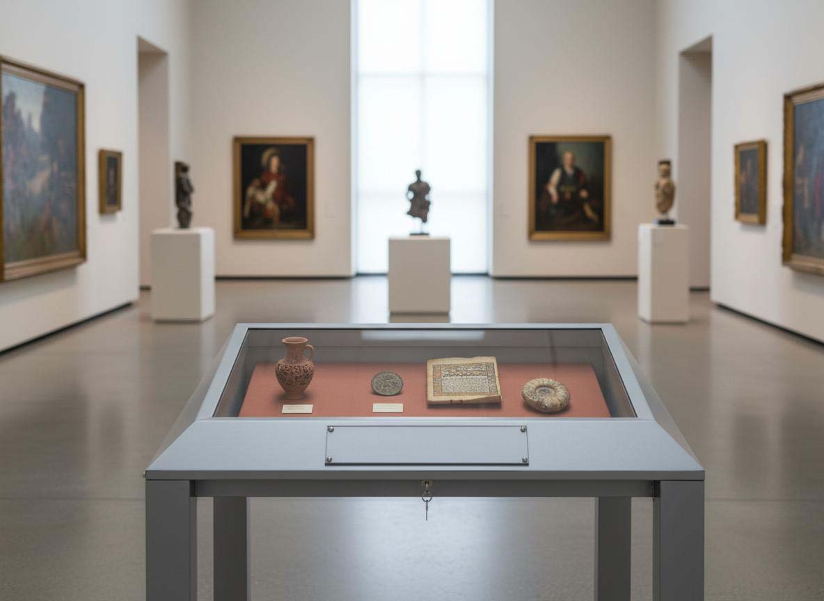 Vetrine espositive della linea testi a tavolo con struttura in acciaio e teca in vetro antinfortunio stratificato. Controllo passivo dell’umidità relativa (silica gel granulare).Le vetrine sono predisposte per impianti di illuminazione a led o fibre ottiche.